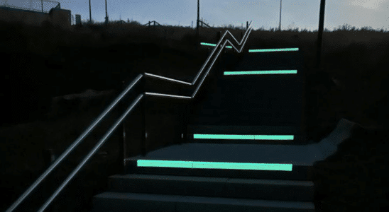 Exterior staircases, handrails and posts can be painted with LuminoKrom® luminescent paint to remain visible in snow or rain. This helps to prevent falls and accidents due to poorly visible slippery surfaces, and thus makes travel safer for vulnerable users.