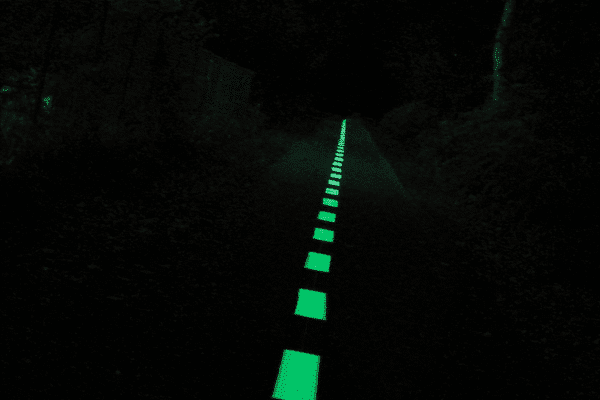 - Charging by natural or artificial light: The paint recharges with daylight or artificial lamps, and continues to shine even in darkness or thick clouds. This ensures that markings remain visible for several hours in poor weather conditions.