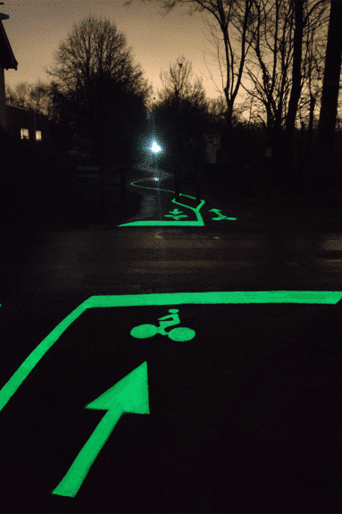 LuminoKrom® can be applied to roads, sidewalks, bike paths and pedestrian areas to provide continuous visibility in poor lighting conditions. For example, photoluminescent road markings remain visible in dense fog or rain, helping users to find their way around.