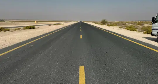 Nature du chantier : Marquages axiaux + en rives continus sur piste cyclable au milieu du désert