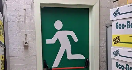 Au printemps 2025, une tour de bureaux située à Bruxelles a été équipée de marquages photoluminescents LuminoKrom® pour renforcer la visibilité des issues de secours à chaque étage. L’intervention a consisté à appliquer la peinture sur les cheminements d’évacuation afin de guider efficacement les occupants vers les sorties sécurisées. Dès l’extinction de l’éclairage, la signalisation s’active instantanément en restituant la lumière accumulée, assurant ainsi une continuité visuelle dans l’ensemble du bâtiment, même en cas de coupure électrique.