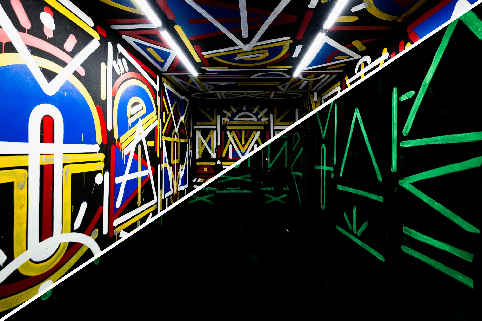 La peinture LuminoKrom® permet ici de proposer un double niveau de lecture : une dimension visible le jour, et une autre, cachée, qui se révèle la nuit ou dans l’obscurité. Ce projet illustre tout le potentiel créatif de notre technologie, capable de sublimer l’art urbain en créant des œuvres vivantes, qui se métamorphosent avec la lumière.